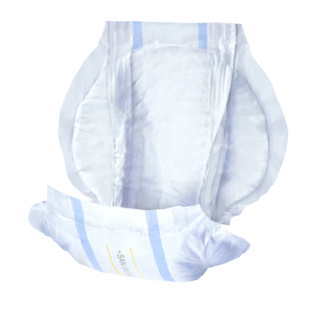 - San Seni Uni to oddychające pieluchy anatomiczne mocowane za pomocą majtek siatkowych. Polecane są w szczególności osobom poruszającym się na wózkach inwalidzkich, otyłym oraz trwale unieruchomionym.